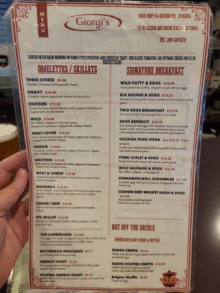 Menu and prices subject to change. Contact +1 208-687-5996 for confirmation.